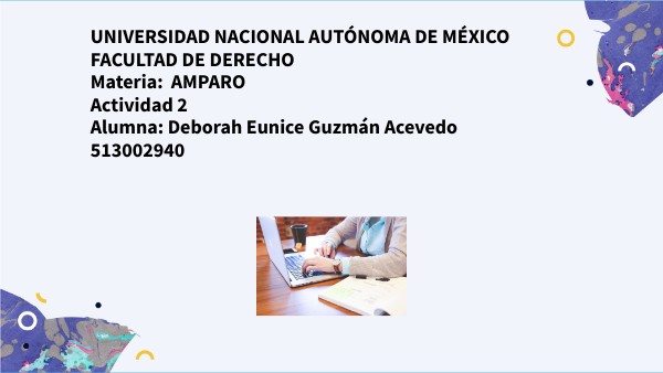 UNIVERSIDAD NACIONAL AUTÓNOMA DE MÉXICO FACULTAD DE DERECHO Materia: AMPARO Actividad 2 Alumna: Deborah Eunice Guzmán Acevedo 513002940