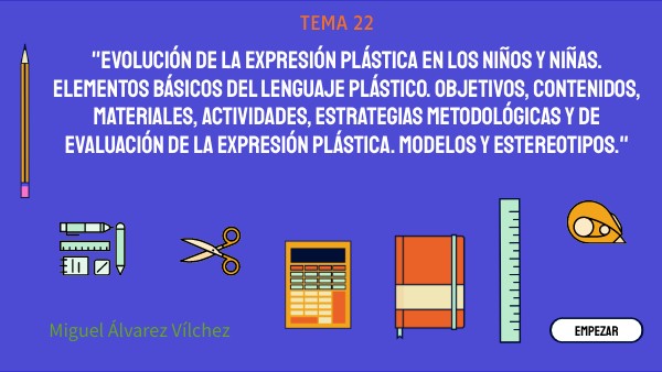 "EVOLUCIÓN DE LA EXPRESIÓN PLÁSTICA EN LOS NIÑOS Y NIÑAS. ELEMENTOS BÁSICOS DEL LENGUAJE PLÁSTICO. OBJETIvOS, CONTENIDOS, MATERIALES, ACTIVIDADES, ESTRATEGIAS METODOLÓGICAS Y DE EVALUACIÓN DE LA EXPRESIÓN PLÁSTICA. MODELOS Y ESTEREOTIPOS."