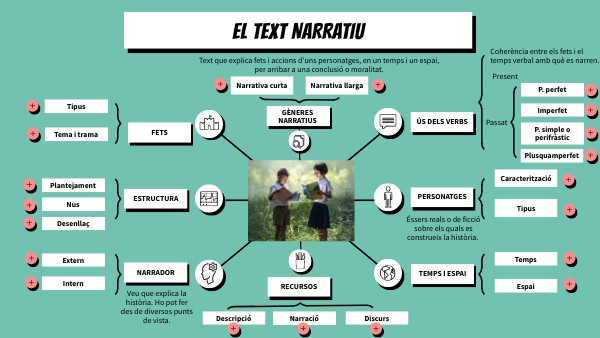 - Hi intervenen personatges que realitzen accions en un lloc i un temps determinats.