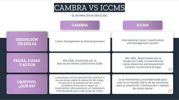 - CAMBRA - CAMBRA modificado (0-5 A) - CAMBRA modificado (>6A) - Caries Risk Semaphore - Cariogram
