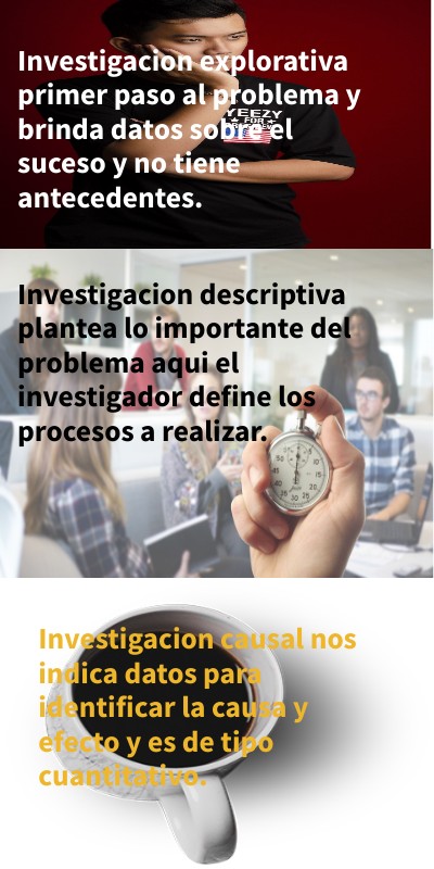 Investigacion explorativa primer paso al problema y brinda datos sobre el suceso y no tiene antecedentes.