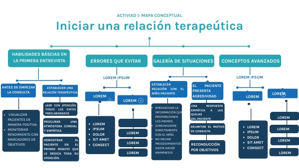 Universidad del Valle de México Licenciatura en Psicología Aplicaciones de la Entrevista Renata Aguilar Baños Erika Viviana Puebla Ortega Profesor: América del Carmen Santos Robles Actividad 1: Mapa conceptual: Iniciar una relacion terapeútica 25/Agosto/2023