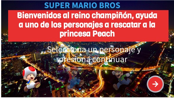 Bienvenidos al reino champiñón, ayuda a uno de los personajes a rescatar a la princesa Peach