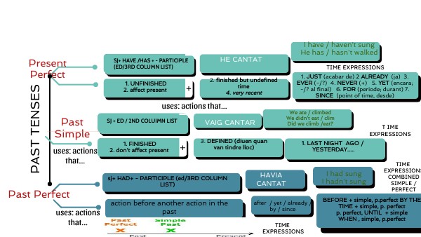 1. JUST (acabar de) 2 ALREADY (ja) 3. EVER (-/?) 4. NEVER (+) 5. YET (encara; -/? al final) 6. FOR (periode; durant) 7. SINCE (point of time, desde)