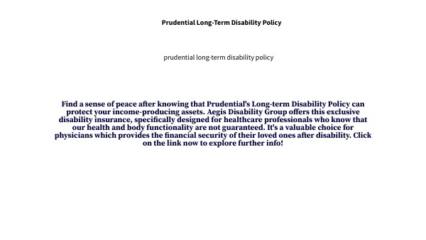 Find a sense of peace after knowing that Prudential's Long-term Disability Policy can protect your income-producing assets. Aegis Disability Group offers this exclusive disability insurance, specifically designed for healthcare professionals who know that our health and body functionality are not guaranteed. It's a valuable choice for physicians which provides the financial security of their loved ones after disability. Click on the link now to explore further info!