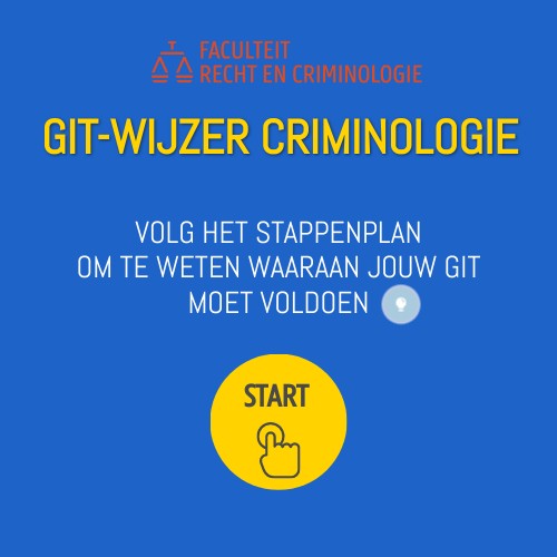 - het vak ‘Project actuele criminologie’ (3de ba) mag pas worden opgenomen als ook alle andere vakken uit de 3de bachelor, met uitzondering van de keuzevakken en de bachelorproef, in jouw GIT zitten