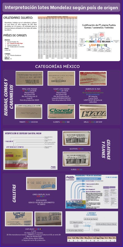 Mondelez, trabaja con el calendario Juliano el cual tiene un año regular de 365 días divididos en 12 meses y es utilizado para la Nomenclatura utilizada en los lotes de todos los SKU’s.