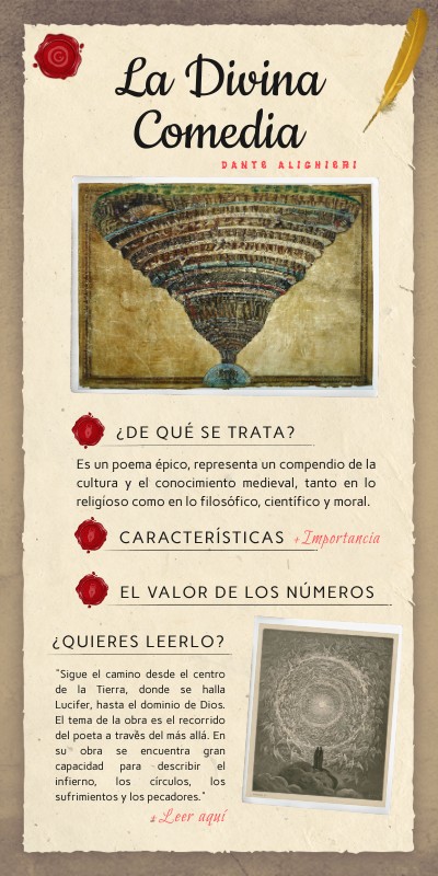 Infografía sobre la obra de Dante Alighieri, La Divina Comedia.