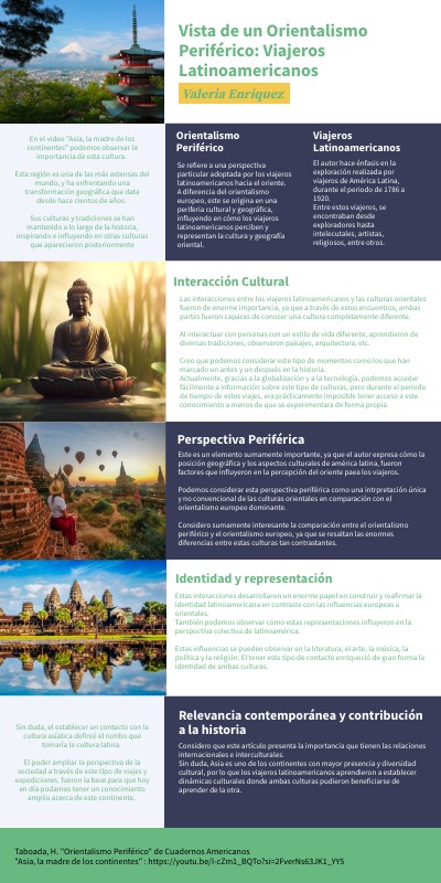 Considero que este artículo presenta la importancia que tienen las relaciones internacionales e interculturales. Sin duda, Asia es uno de los continentes con mayor presencia y diversidad cultural, por lo que los viajeros latinoamericanos aprendieron a establecer dinámicas culturales donde ambas culturas pudieron beneficiarse de aprender de la otra.