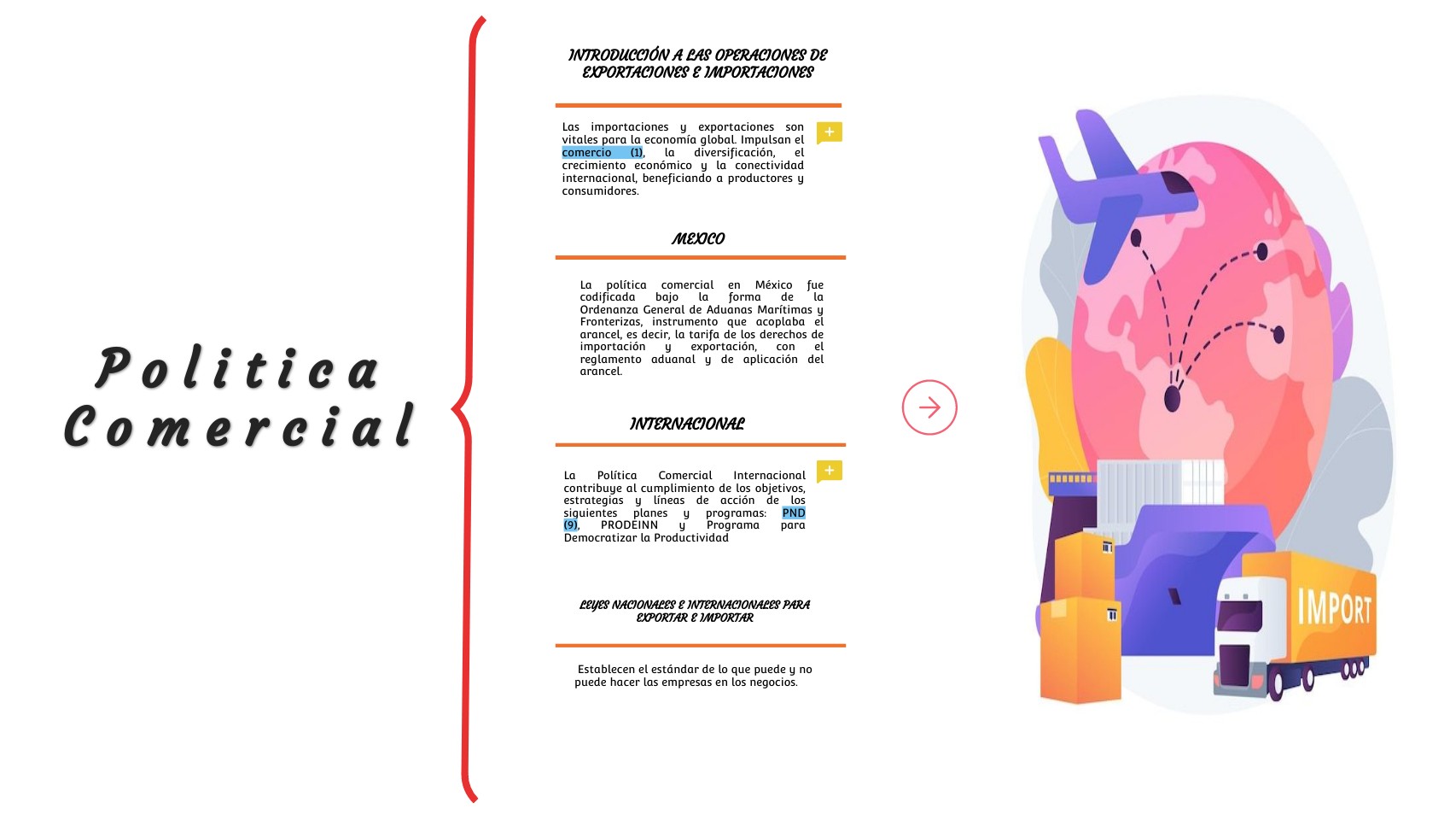 - La política comercial de México se basa en la promoción de la apertura económica y la participación en acuerdos comerciales internacionales