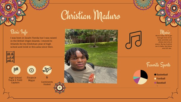 I was born in South Florida but I was raised in the British Virgin Islands. I moved to Orlando for my freshman year of high school and lived in this area since then.