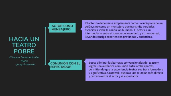 Busca eliminar las barreras convencionales del teatro y lograr una auténtica comunión entre ambas partes, permitiendo que la experiencia teatral sea transformadora y significativa. Grotowski aspira a una relación más directa y cercana entre el actor y el espectador.