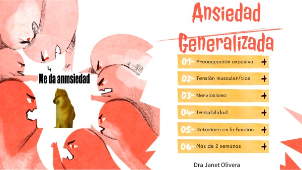 Preocupacion excesiva, más alla de lo normal respecto a todas las situaciones de la vida. NO centralizadas en una sola preocupación