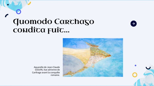 Clique sur le lien ci-contre et observe les reconstitutions suivantes de Carthage : "Maisons puniques", "Montée au temple d'Eshmoun", "Murailles de la mer" et "Carthago (Carthage) punique vers la baie" (clique sur les images pour les agrandir) : En un paragraphe d'une dizaine de lignes, explique précisément de quelle façon la ville a été construite (choix de l'emplacement géographique par rapport aux activités des Carthaginois, architecture des maisons, etc.). Appelle-moi quand tu as fini de rédiger ton paragraphe.