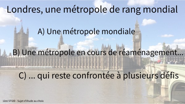 « Londres est la première place boursière européenne et la principale plateforme aéroportuaire du continent. Mais son influence internationale est surtout marquée par le secteur de la finance et symbolisée par la City, son centre historique. La City, peuplée de 7300 habitants, concentre 368 000 emplois (les deux tiers dans les secteurs de la finance et des assurances). Elle abrite la Bourse de Londres (troisième mondiale, derrière New York et Tokyo), plus de 500 banques dont celle d’Angleterre, et les sièges de nombreuses multinationales1. Sa situation géographique lui permet de dialoguer avec l’Asie le matin et l’Amérique du Nord l’après-midi. » 1 Entreprise implantée dans plusieurs paysSource : Mark Bailoni, Delphine Papin, Atlas des villes, La Vie - Le Monde, 2013.