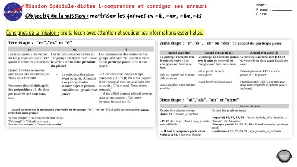 Objectif de la mission : maîtriser les formes en -é, -er, -ée,-és