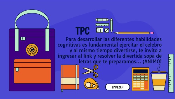 Para desarrollar las diferentes habilidades cognitivas es fundamental ejercitar el celebro y al mismo tiempo divertirse, te invito a ingresar al link y resolver la divertida sopa de letras que te preparamos… ¡ANIMO!