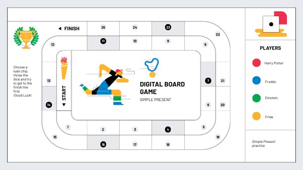 Choose a ludo chip, throw the dice and try to get to the finish line first ¡Good Luck!