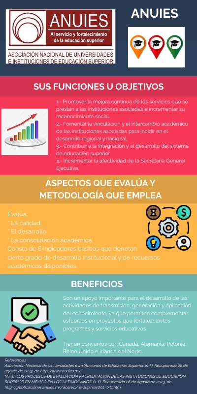 ReferenciasAsociación Nacional de Universidades e Instituciones de Educación Superior. (s. f.). Recuperado 26 de agosto de 2023, de http://www.anuies.mx/ No.91; LOS PROCESOS DE EVALUACIÓN y ACREDITACIÓN DE LAS INSTITUCIONES DE EDUCACIÓN SUPERIOR EN MÉXICO EN LOS ULTIMOS AÑOS. (s. f.). Recuperado 26 de agosto de 2023, de http://publicaciones.anuies.mx/acervo/revsup/res091/txt1.htm