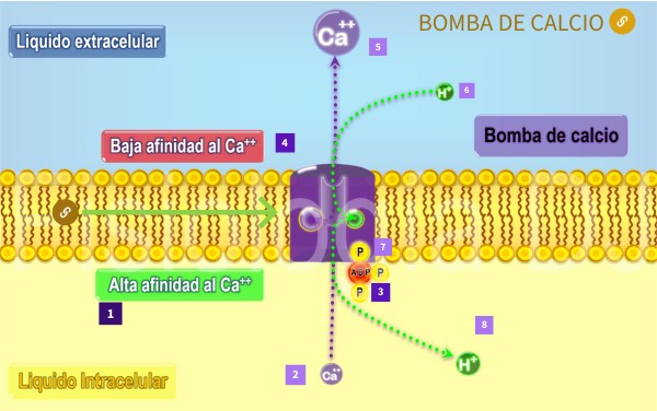La bomba de calcio de membrana plasmático o ATPasa de calcio/Ca2+ es una proteína que tiene la capacidad de transportar calcio en contra de su gradiente electroquímico desde el citoplasma hacia el espacio extracelular.utiliza el transporte activo primario