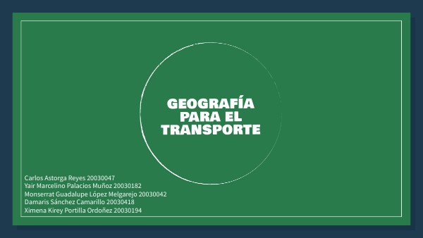 Yair: Como punto de vista puedo devir que los sistemas de transporte como parte de la organización de los espacios geográficos, la configuración y características de las redes de transporte, los flujos que se dan sobre estas redes y los problemas relacionados con el transporte. Damaris: La geografía del transporte tiene un contacto directo con la tierra, los espacios territoriales, está interactúa con diferentes entornos cómo lo son,políticos, sociales,culturales y económicos, los sistemas de transporte dentro de la geografía son importantes ya que estos son las principales redes de flujo y transporte de materiales. Ximena: La geografía desempeña un papel fundamental en el transporte, ya que influye en la planificación de rutas, la accesibilidad a diferentes lugares y la eficiencia de los sistemas de transporte. Carlos: La geografía desempeña un papel crucial en el transporte, ya que influye en la planificación de rutas, la eficiencia del transporte y la conectividad entre lugares, así como la necesidad de optimizar la distribución de recursos y la accesibilidad a través de redes de transporte. Monserrat: Se puede llegar a afirmar que el principal objetivo es superar el espacio que existe entre un origen y un destino para lograr trasladar personas, mercancías y/o información; espacio formado por una variedad de restricciones humanas y físicas tales como la distancia, el tiempo, la topografía y las divisiones administrativas.