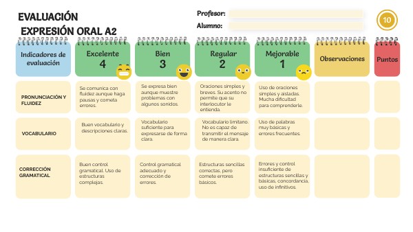 EVALUACIÓN EXPRESIÓN ORAL A2