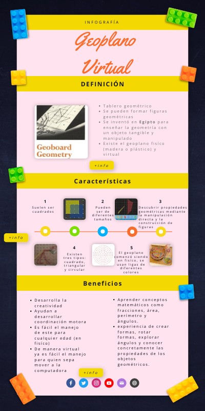 - Existe el geoplano fisíco (madera o plástico) y virtual