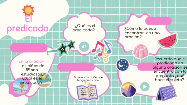 Recuerda que el predicado en alguna oración se encuentra con la pregunta ¿qué hace el sujeto?
