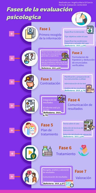 Planificación y preparación de los instrumentos a utilizar Administración de los test Analisis de los resultados (Ballesteros. 2015, p,74)