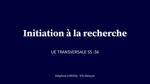 Initiation à la recherche semestre 5
