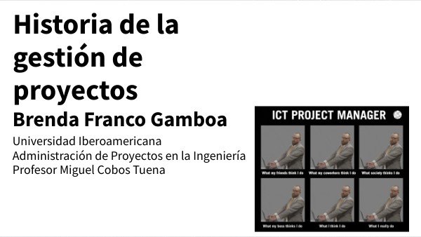 - Olier, D. (2023). Breve Historia de la Gestión de Proyectos. Recuperado de https://pandorafms.com/blog/es/historia-de-la-gestion-de-proyectos/