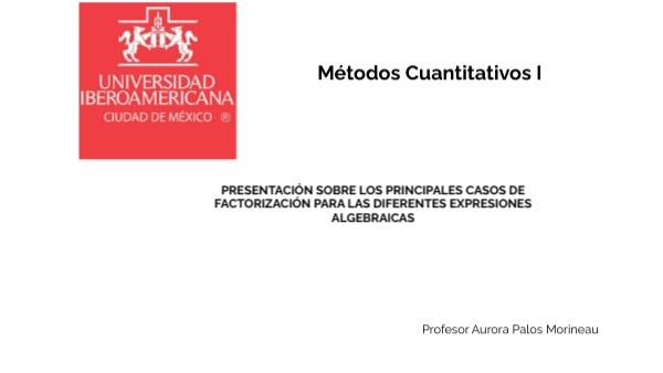 PRESENTACIÓN SOBRE LOS PRINCIPALES CASOS DE FACTORIZACIÓN PARA LAS DIFERENTES EXPRESIONES ALGEBRAICAS