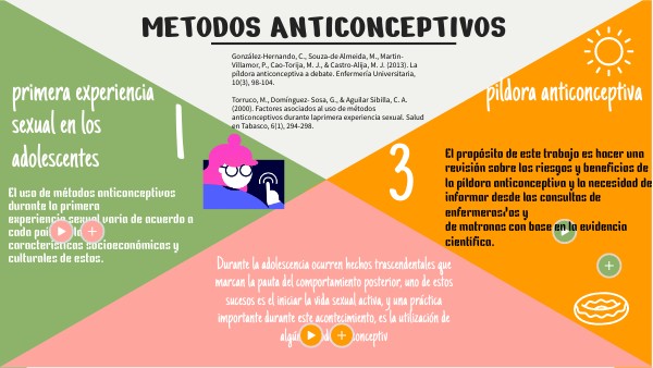 González-Hernando, C., Souza-de Almeida, M., Martin-Villamor, P., Cao-Torija, M. J., & Castro-Alija, M. J. (2013). La píldora anticonceptiva a debate. Enfermería Universitaria, 10(3), 98-104. Torruco, M., Domínguez- Sosa, G., & Aguilar Sibilla, C. A. (2000). Factores asociados al uso de métodos anticonceptivos durante laprimera experiencia sexual. Salud en Tabasco, 6(1), 294-298.