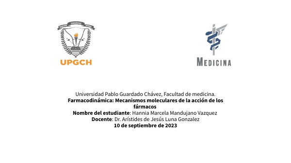 Universidad Pablo Guardado Chávez, Facultad de medicina.Farmacodinámica: Mecanismos moleculares de la acción de los fármacos Nombre del estudiante: Hannia Marcela Mandujano Vazquez Docente: Dr. Arístides de Jesús Luna Gonzalez 10 de septiembre de 2023