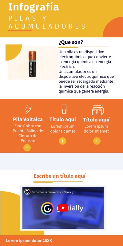 Un acumulador es un dispositivo electroquímico que puede ser recargado mediante la inversión de la reacción química que genera energía. Componentes: - Ánodo: Por lo general, se compone de materiales que pueden aceptar y liberar iones durante las reacciones redox, como el plomo en una batería de plomo-ácido. -Cátodo: Utiliza materiales como dióxido de plomo en el caso de la batería de plomo-ácido. -Electrolito: Proporciona un medio para el flujo de iones entre el ánodo y el cátodo. En una batería de plomo-ácido, el electrolito es una solución de ácido sulfúrico diluido. -Separador: Mantiene el ánodo y el cátodo separados para prevenir cortocircuitos. -Recarga: Una característica fundamental es que puede revertir el flujo de electrones, lo que permite recargar la batería conectándola a una fuente de energía externa.