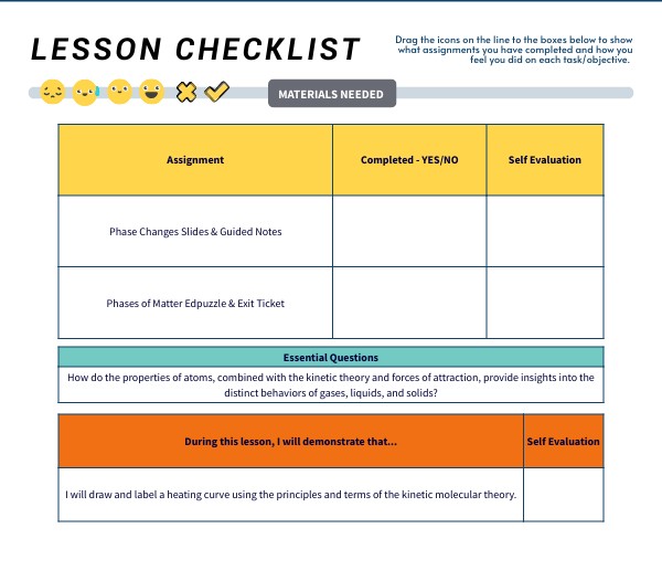 Drag the icons on the line to the boxes below to show what assignments you have completed and how you feel you did on each task/objective.