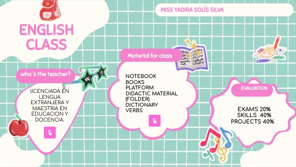 Todo material debera ser etiquetadio con datos en inglés , asi mismo cualquier trabajo durante el ciclo escolar