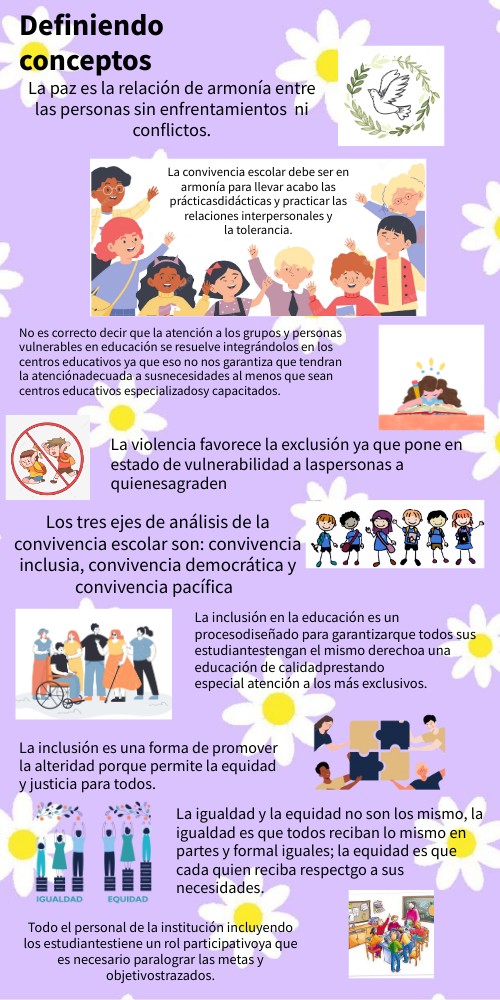La convivencia escolar debe ser en armonía para llevar acabo las prácticasdidácticas y practicar las relaciones interpersonales y la tolerancia.