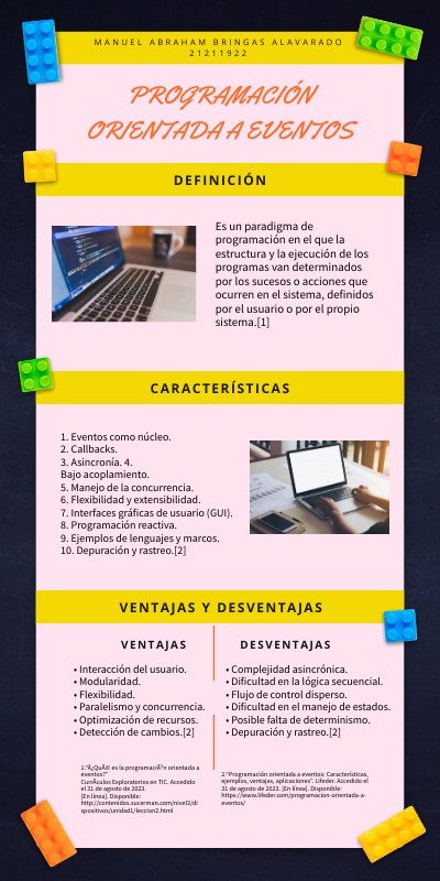 2.“Programación orientada a eventos: Características, ejemplos, ventajas, aplicaciones”. Lifeder. Accedido el 31 de agosto de 2023. [En línea]. Disponible: https://www.lifeder.com/programacion-orientada-a-eventos/