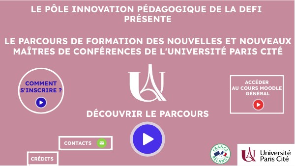 INFORMATIONS Lors la journée du 18 septembre 2023, l'ensemble des formations seront présentées aux nouvelles et nouveaux maîtres de conférences.Avec l'appui de l'équipe pédagogique, elles et ils construiront leur parcours personnalisé et complèteront un formulaire sur Moodle. Ces informations permettront au Pôle Innovation Pédagogique d'ajuster le calendrier des formations en fonction des besoins.