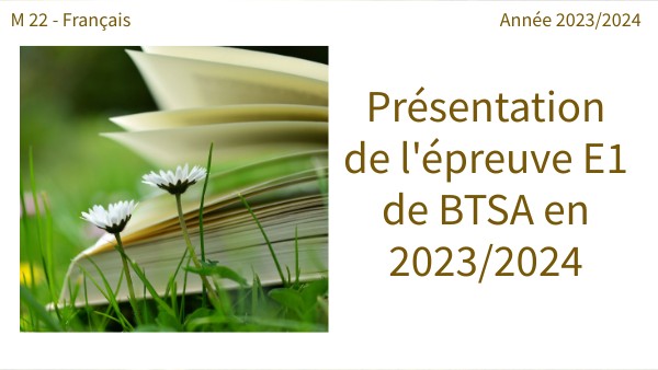 Présentation de l'épreuve E1 de BTSA en 2023/2024