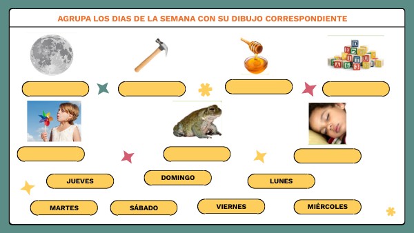AGRUPA LOS DIAS DE LA SEMANA CON SU DIBUJO CORRESPONDIENTE