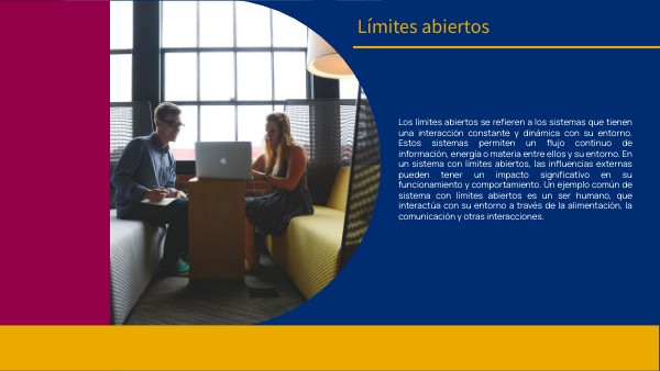 Los límites abiertos se refieren a los sistemas que tienen una interacción constante y dinámica con su entorno. Estos sistemas permiten un flujo continuo de información, energía o materia entre ellos y su entorno. En un sistema con límites abiertos, las influencias externas pueden tener un impacto significativo en su funcionamiento y comportamiento. Un ejemplo común de sistema con límites abiertos es un ser humano, que interactúa con su entorno a través de la alimentación, la comunicación y otras interacciones.