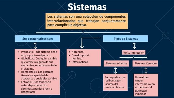 Los sistemas son una coleccion de componentes interrelacionados que trabajan conjuntamente para cumplir un objetivo.