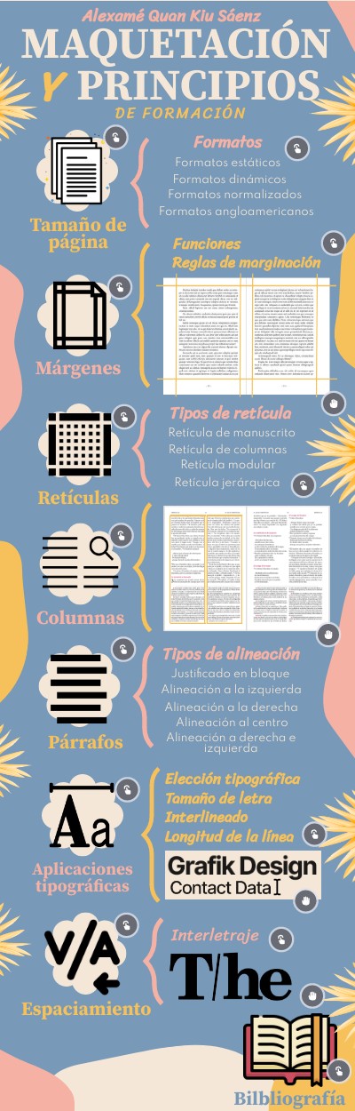 Autores Editores. (2014, 12 julio). ¿Cómo utilizar guiones separar sílabas y justificar el texto en Word? [Vídeo]. YouTube. https://www.youtube.com/watch?v=0b40-HojhiY Eguaras - Consultoría editorial. https://marianaeguaras.com/reticula-organizativa-caracteristicas-de-una-maquetacion-a-dos-columnas/ Eguaras, M. (2023a). Distintos tipos de párrafo y en qué clase de textos usarlos. Servicios editoriales y asesoramiento • Mariana Eguaras - Consultoría editorial. https://marianaeguaras.com/distintos-tipos-de-parrafo-y-en-que-clase-de-textos-usarlos/ Eguaras, M. (2022a). Raúl Rosarivo y el canon ternario en los libros renacentistas. Servicios editoriales y asesoramiento • Mariana Eguaras - Consultoría editorial. https://marianaeguaras.com/raul-rosarivo-canon-ternario/ Eguaras, M. (2022). Retícula organizativa: características de una maquetación a dos columnas. Servicios editoriales y asesoramiento • Mariana Eguaras, M. (2023). La sección Áurea en la composición y maquetación de libros. Servicios editoriales y asesoramiento • Mariana Eguaras - Consultoría editorial. https://marianaeguaras.com/la-seccion-aurea-en-la-composicion-y-maquetacion-de-libros/ Joseperez. (2022). Márgenes de libros. La distribución de los blancos en un libro impreso. La Imprenta. https://www.laimprentacg.com/margenes-de-libros-la-distribucion-de-los-blancos-en-un-libro-impreso/ UNAM & Licenciatura en Diseño y Comunicación Visual. (2023). Maquetación y principios de formaciónl (Unidad 3, Actividad 1). CUAED Qué es una retícula en diseño gráfico y cuáles son sus tipos. (s. f.). Neetwork - Escuela de Negocios Digitales. https://neetwork.com/que-es-una-reticula-en-diseno-grafico-y-cuales-son-sus-tipos/
