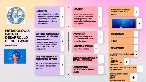 son un conjunto y tecnicas y metodos organzados que se aplican para diseñar situaciones de softtware informativo.