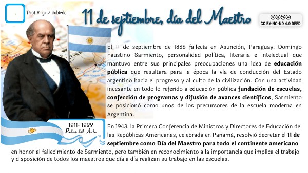 El 11 de septiembre de 1888 fallecìa en Asunciòn, Paraguay, Domingo Faustino Sarmiento, personalidad polìtica, literaria e intelectual que mantuvo entre sus principales preocupaciones una idea de educaciòn pùblica que resultara para la època la vìa de conducciòn del Estado argentino hacia el progreso y al culto de la civilizaciòn. Con una actividad incesante en todo lo referido a educaciòn pùblica fundaciòn de escuelas, confecciòn de programas y difusiòn de avances cientìficos, Sarmiento se posicionò como unos de los precursores de la escuela moderna en Argentina.