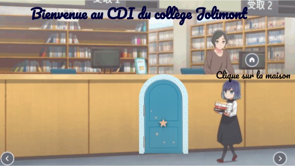 Pour pouvoir fréquenter le CDI, il faut ouvrir la porte magique à l'aide du code secret. Clique sur le livre ouvert caché dans la pièce.