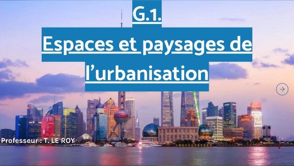 Depuis 2007, plus de la moitié de la population mondiale vit en ville, probablement 2 tiers de l'humanité vivra en ville d'ici 2050 : il s'agit d'un fait majeur de la mondialisation. Nous allons prendre conscience des prinicpaux types d'espaces et de paysages que l'urbanisation met en place.