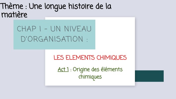 Act 1 : Origine des éléments chimiques